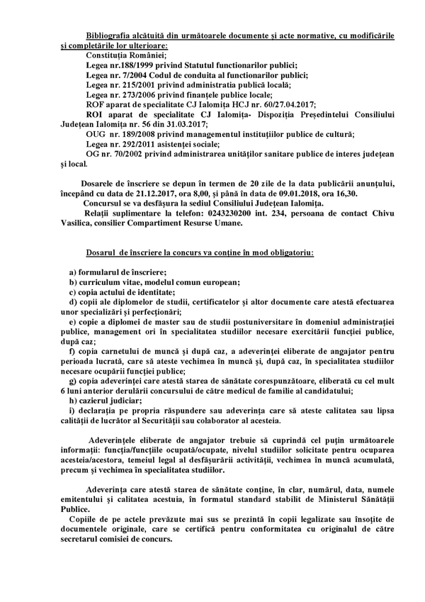 Anunț concurs ocupare un post funcție publică de execuție de consilier, clasa I, gradul profesional superior un post funcție publică de execuție de consilier, clasa I, gradul profesional asistent