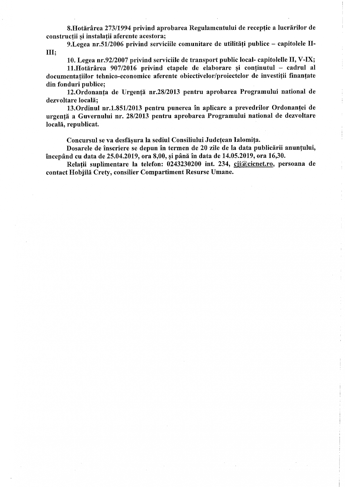 Prima pagină » Anunt organizare concurs pentru ocuparea functiei publice vacante de conducere de director executiv, gradul II - Directia Investitii si Servicii Publice