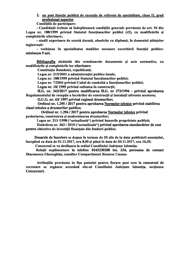 Atribuții referent specialitate - Infrastructura rutieraAtribuții șef serviciu - Investiții și servicii publice