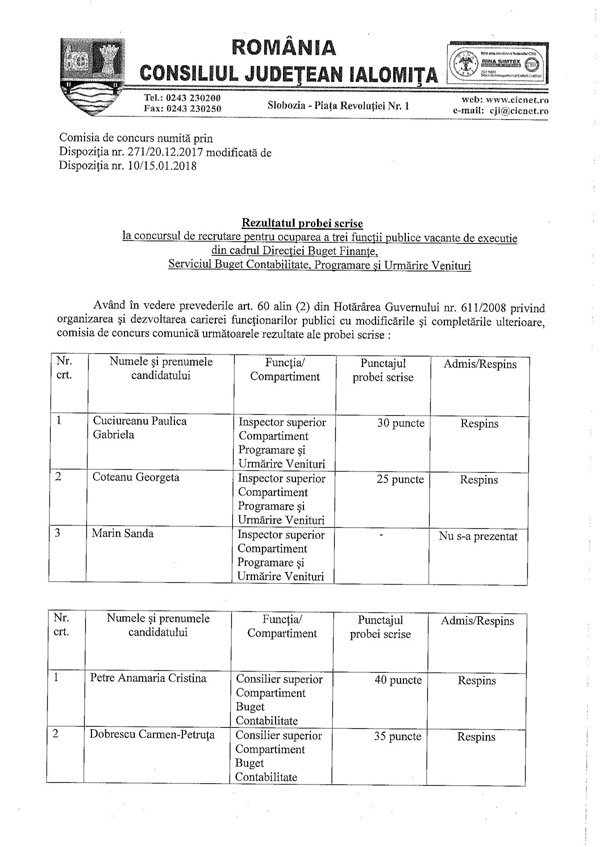 Rezultat probă scrisă concurs ocupare funcții publice de execuție vacante din cadru DBF