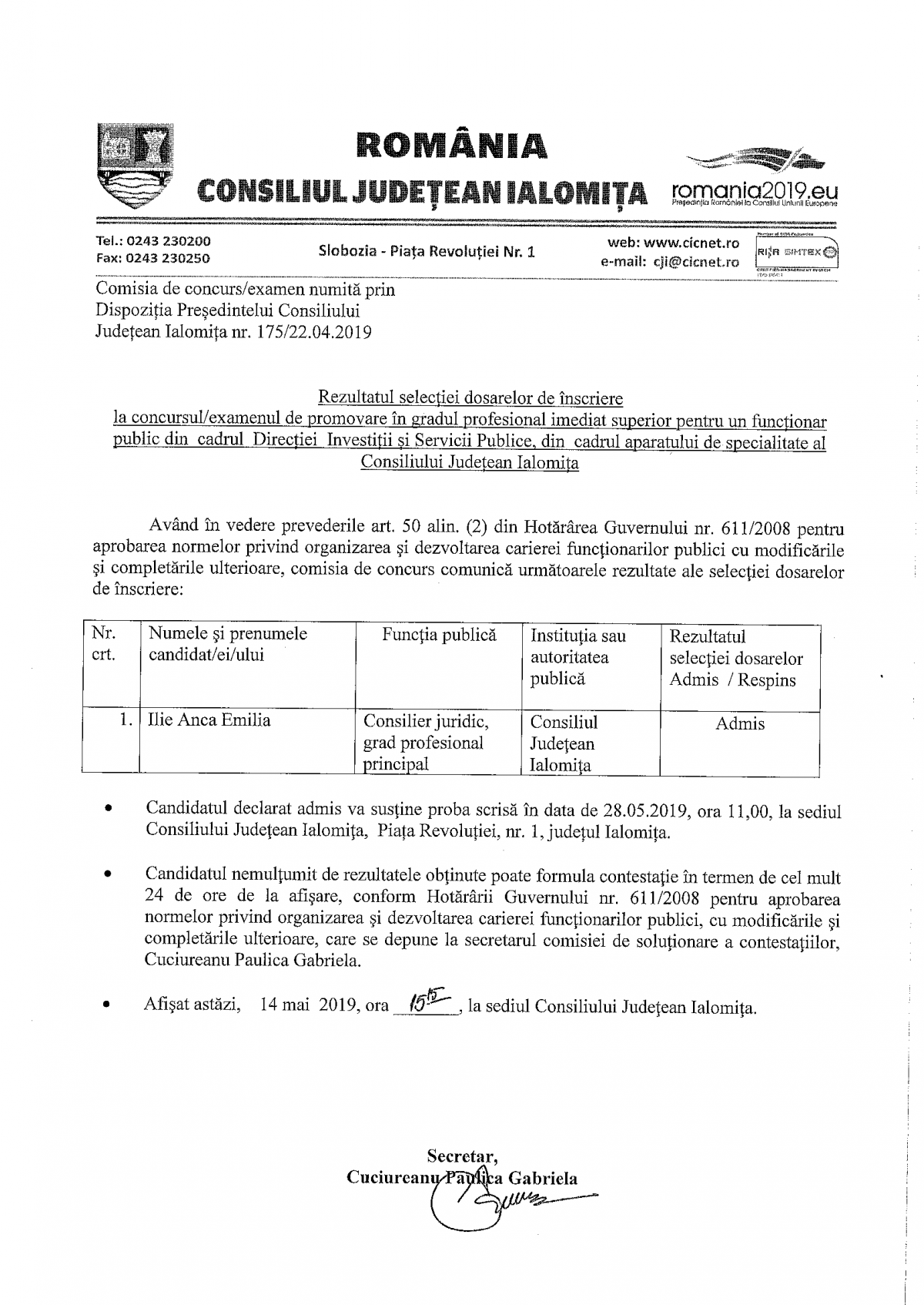 Rezultat selecție dosare concurs/examen promovare DISP