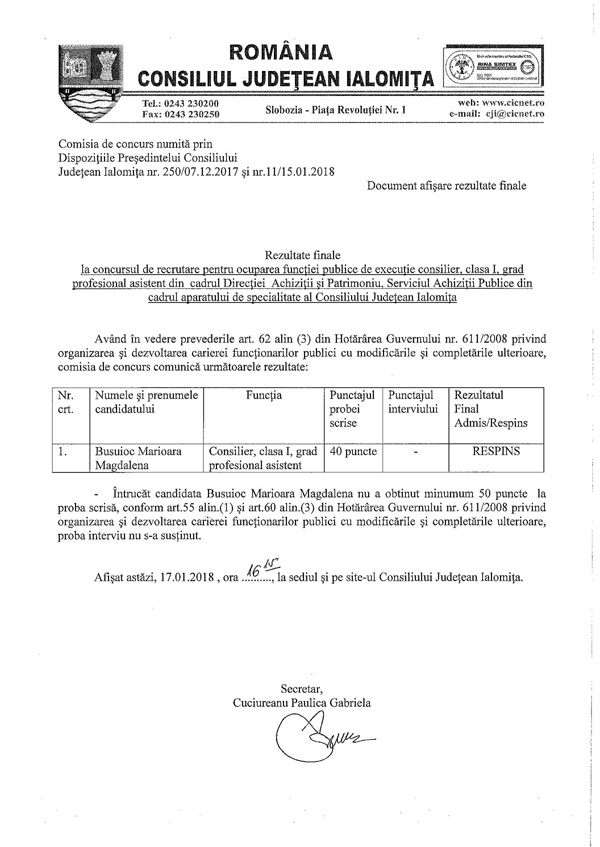 Rezultate finale la concursul de recrutare pentru ocupare funcție de execuție consilier asistent DAP